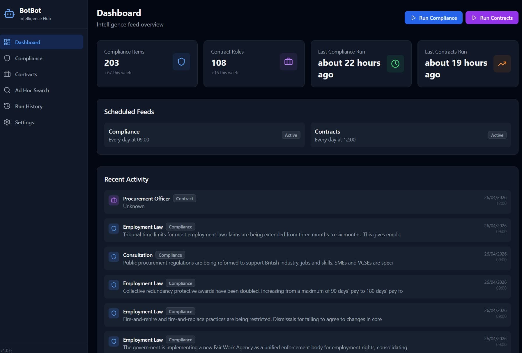 ComplianceAI is a multi-document audit engine for UK regulated businesses. Upload your full policy set and within a minute it produces a structured audit report identifying contradictions between documents, gaps against a chosen UK standard, broken internal references, inconsistent terminology, and content that's fallen behind regulation changes.